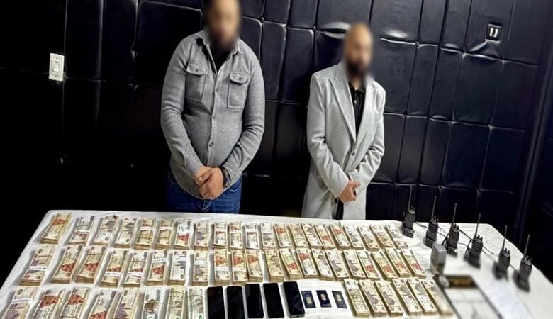 وبحوزتهما تم ضبط مبالغ مالية، وعدد من السبائك الذهبية من متحصلات نشاطهما، وعقود وكروت دعائية، و6 أجهزة لاسلكية، و5 هواتف محمولة.