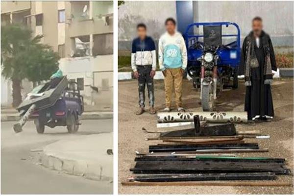 بالفحص، تم تحديد وضبط مركبة التروسيكل، الظاهرة بمقطع الفيديو منتهية التراخيص، وقائدها ومستقلها مقيمان بدائرة قسم شرطة أول العاشر من رمضان بالشرقية، وبمواجهتهما أقرا بأنه حال سيرهما تلاحظ لهما سقوط لافتة إعلانية حديدية أرضا لسوء الأحول الجوية، فقاما بالاستيلاء عليها ونقلها بالتروسيكل، وبيعها لعميل سىء النية «تاجر خردة مقيم بدائرة القسم».