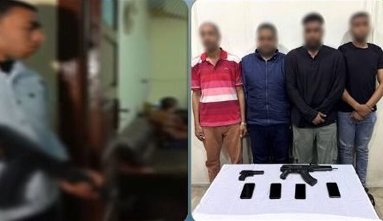 وبالفحص تم تحديد وضبط الظاهرين بمقطع الفيديو (4 أشخاص – مقيمين بمحافظة الأقصر) وبحوزتهم (4 هواتف محمولة – بندقية آلية، طبنجة” هيكليتين”).