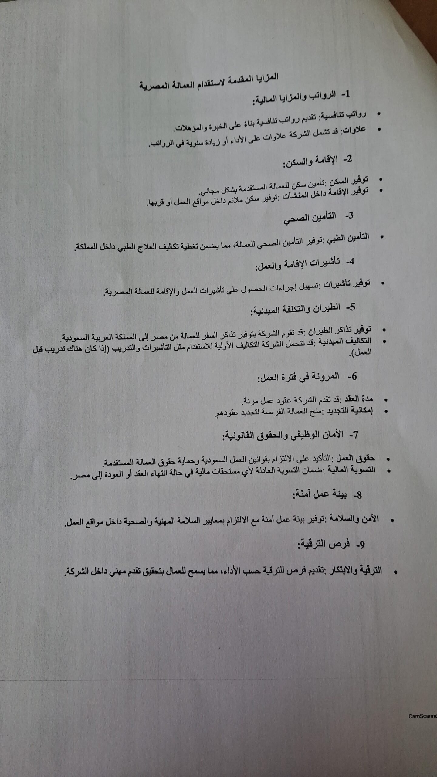وأوضحت وزارة العمل أن المزايا في هذه الوظائف، تشمل توفير السكن المجاني، و تذاكر طيران ذهاب وعودة، وإقامة داخل المنشآت، وتأمين صحي شامل.