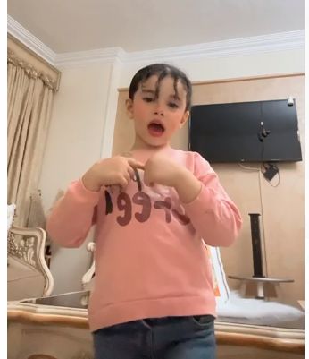 وبدت الطفلة “ديلارا” في الصور تستعرض شعرها وثيابها على طريقة عارضات الازياء وهى تردد الأغاني