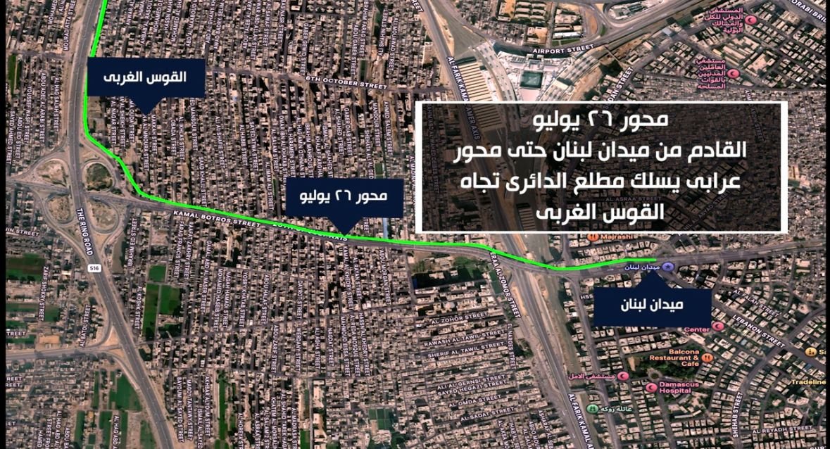 – محور ٢٦ يوليو: القادم من ميدان لبنان حتى محور عرابى.. يسلك مطلع الدائرى تجاه القوس الغربى.