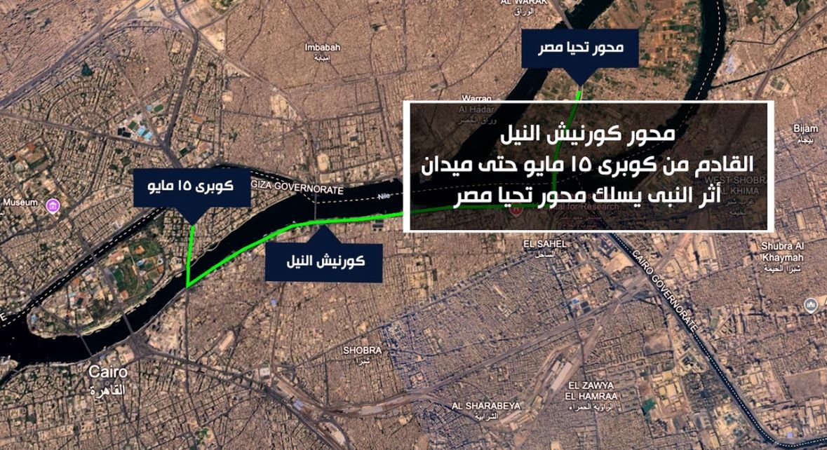 – محور كورنيش النيل: القادم من كوبرى ١٥ مايو حتى ميدان أثر النبى.. يسلك محور تحيا مصر.