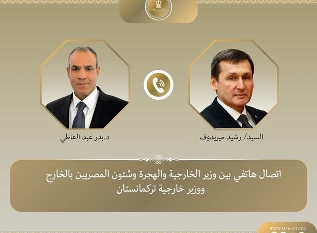 وأكد الوزير عبد العاطي – خلال الاتصال – الحرص على متابعة نتائج الدورة الثانية من اللجنة المصرية التركمانستانية المشتركة للتعاون الاقتصادي والعلمي والفني، واستغلال الإمكانات المتاحة لدى الجانبين لتعزيز التعاون في مجالات الاستثمار والتجارة والقطاعات ذات الأولوية؛ بما يسهم في رفع حجم التبادل التجاري بين البلدين.