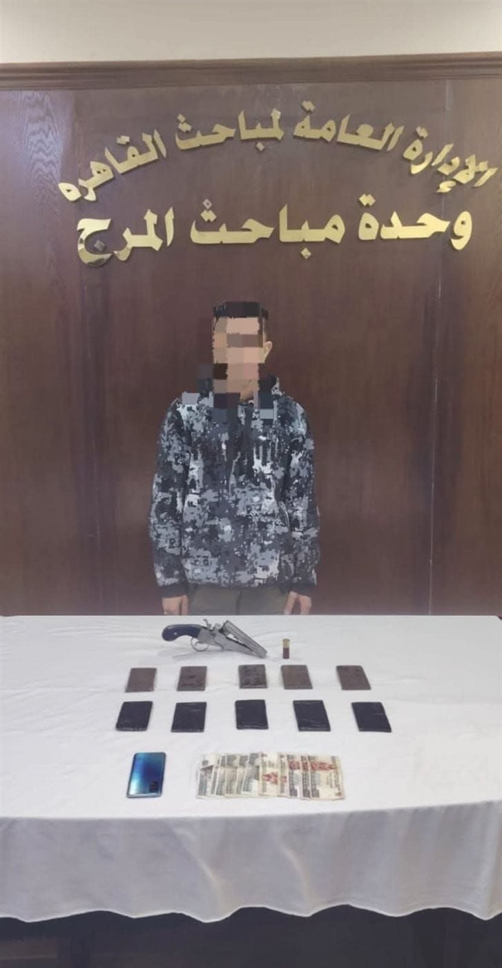 وعقب تقنين الإجراءات، تمكن رجال المباحث من ضبط المتهم، وبحوزته كمية من مخدر الحشيش، ومبلغ مالي يُشتبه في كونه من متحصلات نشاطه الإجرامي، بالإضافة إلى سلاح ناري عبارة عن فرد خرطوش وطلقة من ذات العيار، وهاتف محمول.