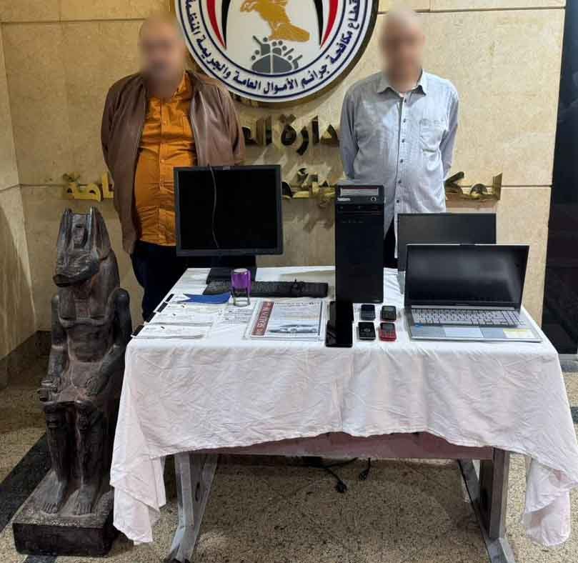 وعقب تقنين الإجراءات، تم ضبطهما، وعُثر بحوزتهما على عقود حجز سيارات كهربائية من الخارج، ودفاتر شيكات بنكية، أجهزة كمبيوتر، و6 هواتف محمولة، وتمثال متوسط الحجم يُشتبه في أثريته (جارٍ فحصه بالتنسيق مع الجهات المعنية).