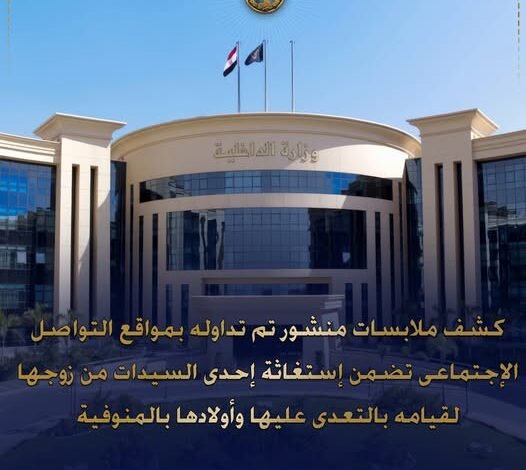 كشفت الأجهزة الأمنية ملابسات منشور تم تداوله على إحدى الصفحات الشخصية بمواقع التواصل الاجتماعي، تضمن استغاثة سيدة من تعرضها وأبنائها للتعدي على يد زوجها بمحافظة المنوفية.