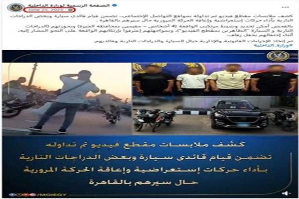 مباحث القاهرة تكشف حقيقة فيديو قيام أشخاص بأداء حركات استعراضية بالدراجات النارية