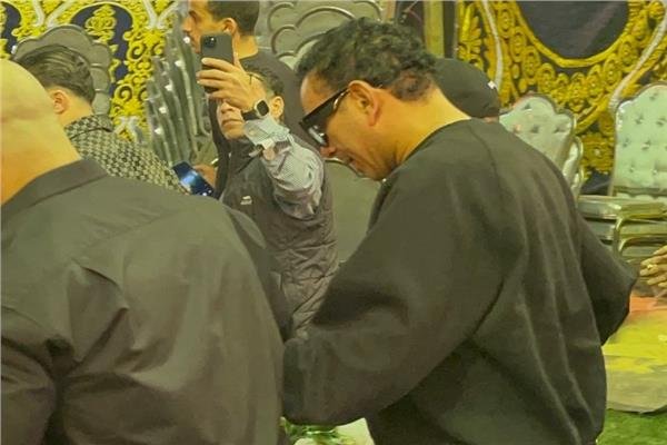 حرص الفنان محمود الليثي على أن يكون أول الحاضرين لتقديم واجب العزاء في الراحل.