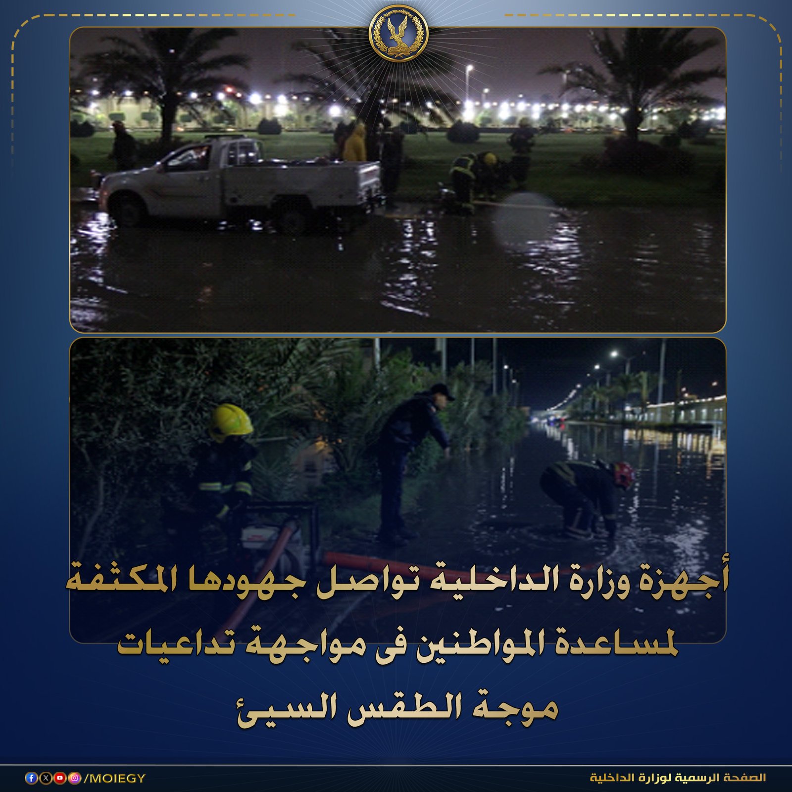 شهدت الجهود تنسيقًا مكثفًا بين أجهزة وزارة الداخلية والجهات المعنية، مع تجهيز كافة الأطقم الفنية والقوات اللازمة للتعامل الفوري مع تداعيات الطقس السيئ والحد من آثاره السلبية.